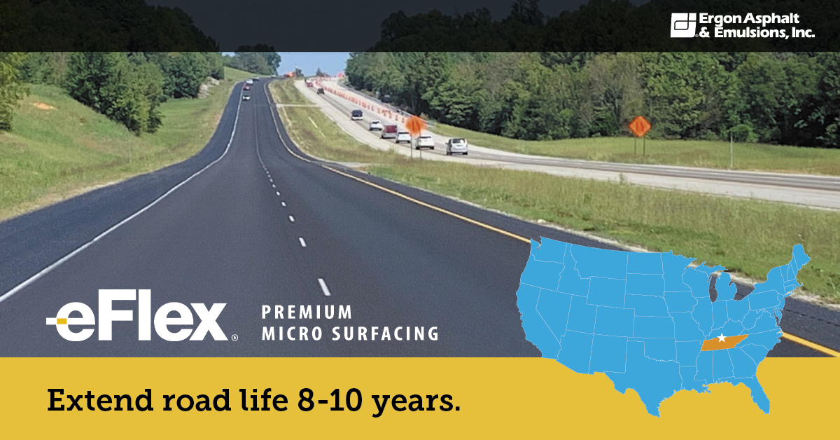 eFlex made its Tennessee debut on the heavily trafficked State Route (SR) 111 in Overton County, meeting agency and contractor expectations for constructibility and appearance. TDOT can expect the eFlex treatment to extend the life of SR-111 by another eight to 10 years at one-third the cost of hot mix asphalt (according to the industry average).